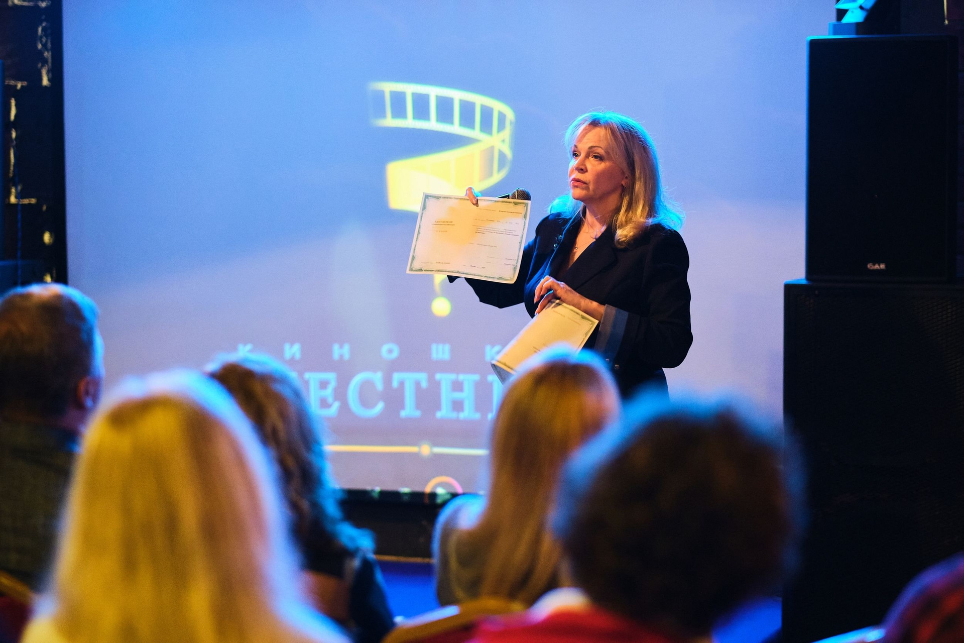 Директор Киношколы «Лестница», продюсер и режиссер Нина Комарова представила собравшимся мастерские киношколы «Лестница», особой гордостью которой являются операторские мастерские: